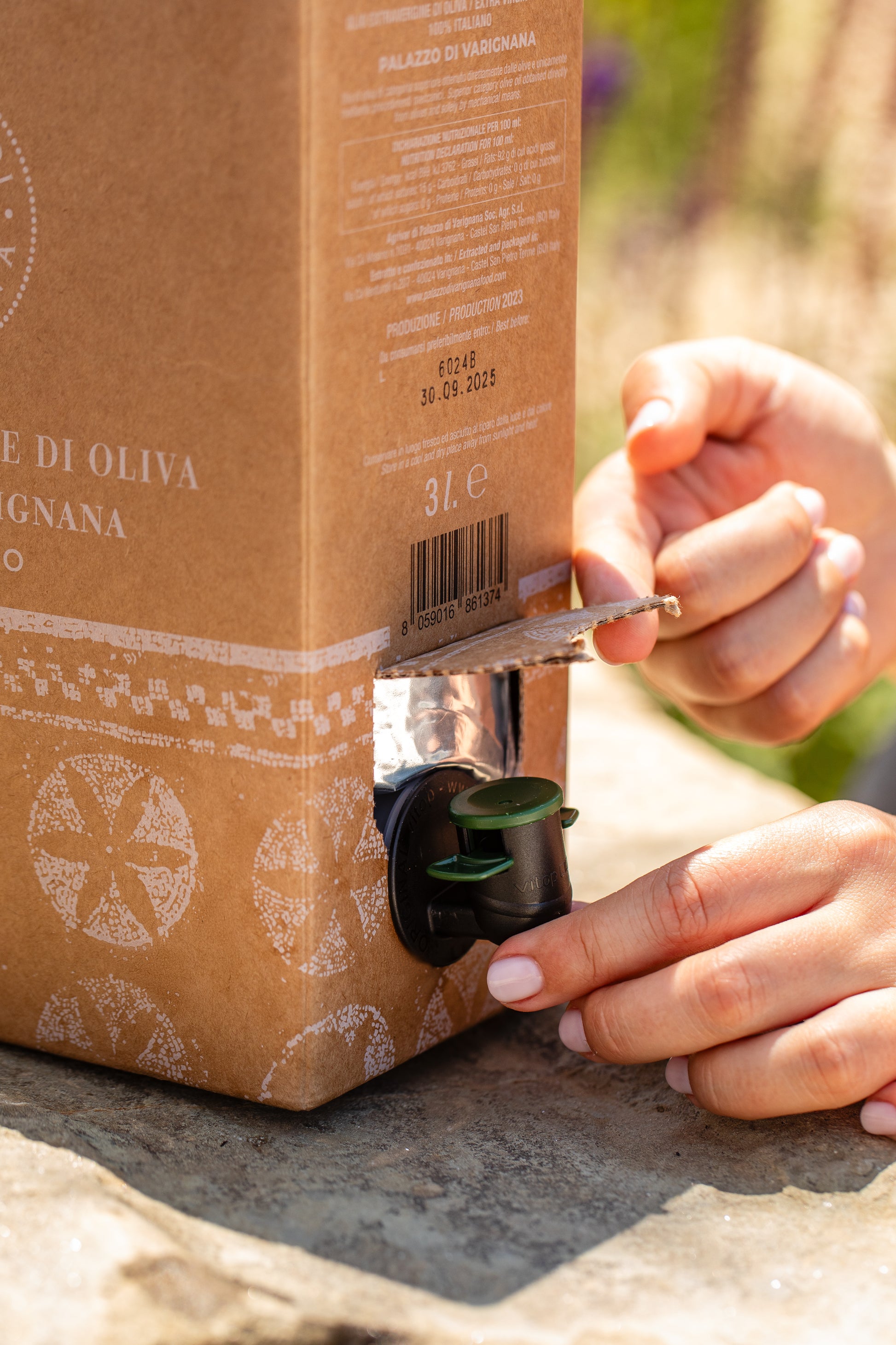 An oil always new to every taste, protected from the oxygen, its most dangerous enemy, the bag in box keeps intact the aromas, preserves its organoleptic qualities, protects its nutraceutical virtues.